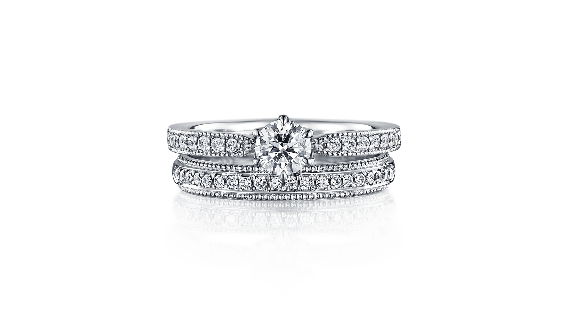 Elegant and vintage design highlights by the milgrain details and sparkly side diamonds. The milgrain along the edges of the ring symbolize a couple’s commitment to each other forever.